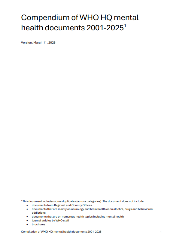 Compendium of WHO HQ mental health documents 2001-2025